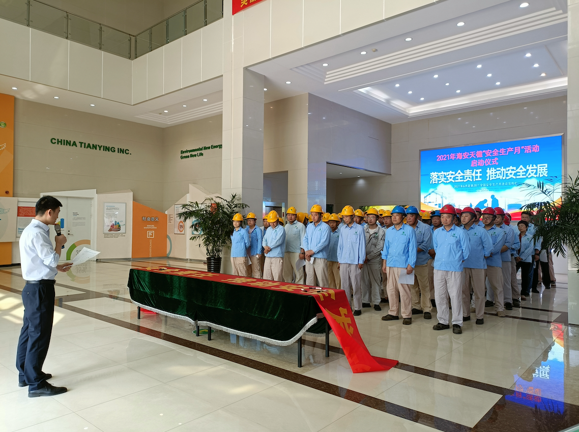 今年6月是第20個(gè)全國(guó)“安全生產(chǎn)月”,2021年安全生產(chǎn)月的主題是“落實(shí)安全責(zé)任、推動(dòng)安全發(fā)展”。為積極響應(yīng)貫徹總公司“安全生產(chǎn)月”活動(dòng)的工作要求,推進(jìn)落實(shí)安全生產(chǎn)主體責(zé)任,提升全員安全生產(chǎn)意識(shí),維護(hù)公司安全生產(chǎn)穩(wěn)定形勢(shì),海安天楹環(huán)保能源有限公司于2021年6月7日上午9點(diǎn)在主廠房一樓大廳舉行“安全生產(chǎn)月”啟動(dòng)儀式暨動(dòng)員大會(huì)。