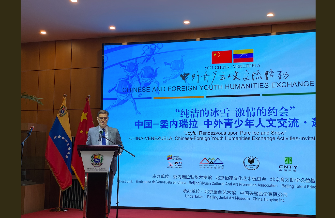 委內(nèi)瑞拉駐華大使菲利克斯在活動致辭中表示,此次展覽旨在推動中委兩國兒童與青少年的人文藝術(shù)交流,并以此為契機(jī)傳播努力、守紀(jì)、奮斗的體育精神。菲利克斯大使邀請來賓“共同見證中委兩國兒童和青年的優(yōu)秀才華與非凡的創(chuàng)造力,并共同努力為下一代創(chuàng)造一個光明的未來,鋪就一條充滿正義、平等、情誼的道路”。他還代表委內(nèi)瑞拉祝愿2022北京冬奧會取得圓滿成功,并期待借助冬奧會助推世界人民的團(tuán)結(jié)與和平。