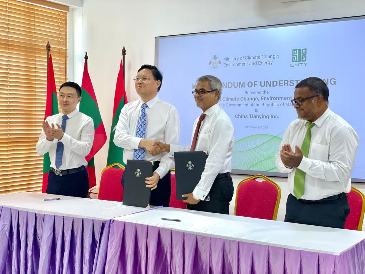 3月21日,中國天楹總裁曹德標(biāo)同馬爾代夫氣候變化、環(huán)境與能源部長陶瑞克·易卜拉欣正式簽署合作備忘錄,雙方將努力協(xié)作,共同應(yīng)對氣候變化,在可持續(xù)發(fā)展、能源轉(zhuǎn)型、環(huán)境保護(hù)、循環(huán)經(jīng)濟(jì)以及低碳城市發(fā)展等議題上展開深度合作。
