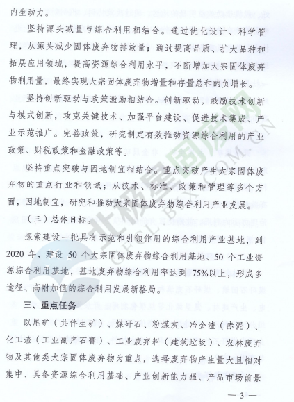 為落實(shí)《中華人民共和國(guó)經(jīng)濟(jì)和社會(huì)發(fā)展第十三個(gè)五年規(guī)劃綱要》《循環(huán)發(fā)展引領(lǐng)計(jì)劃》和《工業(yè)綠色發(fā)展規(guī)劃》,促進(jìn)產(chǎn)業(yè)集聚,提高資源綜合利用水平,推動(dòng)資源綜合利用產(chǎn)業(yè)高質(zhì)量發(fā)展,近日,國(guó)家發(fā)展改革委辦公廳和工業(yè)和信息化部辦公廳印發(fā)了關(guān)于推進(jìn)大宗固體廢棄物綜合利用產(chǎn)業(yè)集聚發(fā)展的通知。全文如下:
