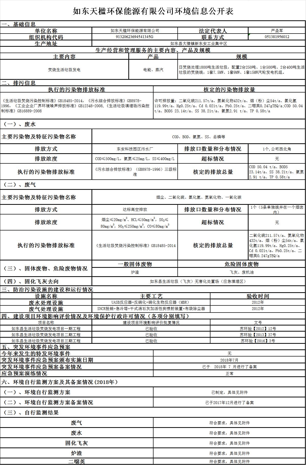 如東天楹環(huán)保能源有限公司2018年環(huán)境信息公開(kāi)表
